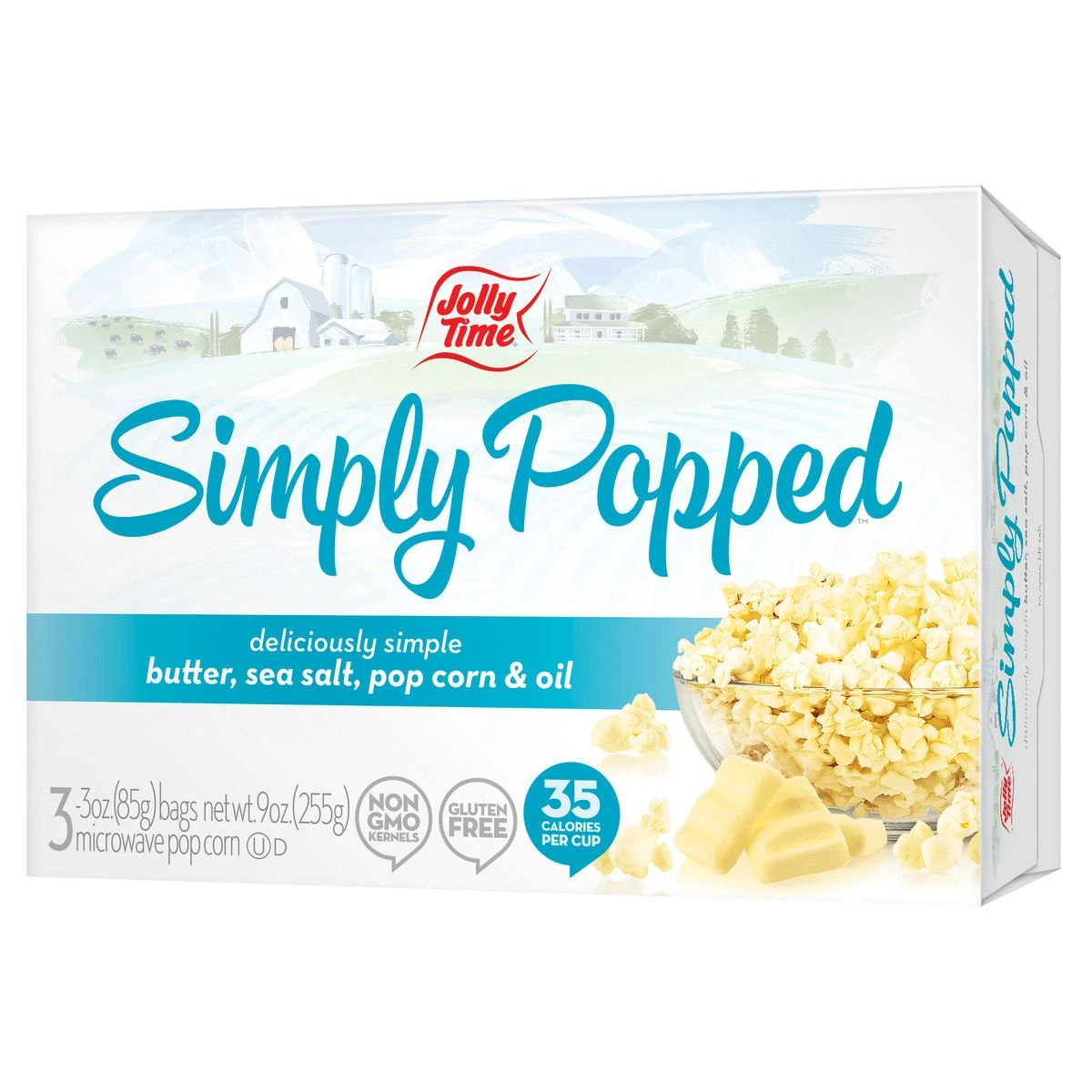 Jolly Time Simply Popped Microwave Popcorn, Butter, 3-Pack, 769, 3 OZ